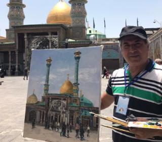 گنبد و بارگاه حرم حضرت عبدالعظیم (ع) توسّط استاد حسن نادرعلی روی بوم نقاشی