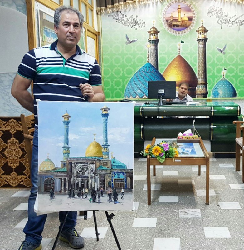 گنبد و بارگاه حرم حضرت عبدالعظیم علیه السّلام توسّط نقاش خوش ذوق استاد حسن نادرعلی روی بوم ترسیم شد