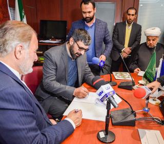 نشست خبری برنامه های هفته بزرگداشت میلاد و امضای تفاهم نامه با صدا و سیما و برخی رسانه ها