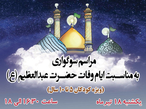 مراسم سوگواری وفات حضرت عبدالعظیم علیه السّلام ویژه کودکان 5 تا 10 سال برگزار می‌گردد.