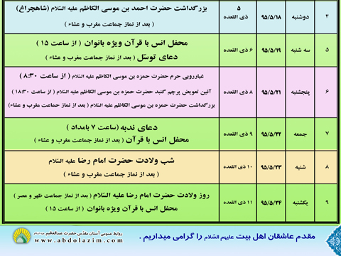 ويژه برنامه هاي آستان مقدّس حضرت عبدالعظيم عليه السّلام در دهه كرامت