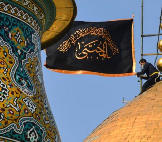 آئین اهتزاز پرچم عزا بر فراز گنبد زرین حضرت عبدالعظيم(ع) در شب رحلت آنحضرت