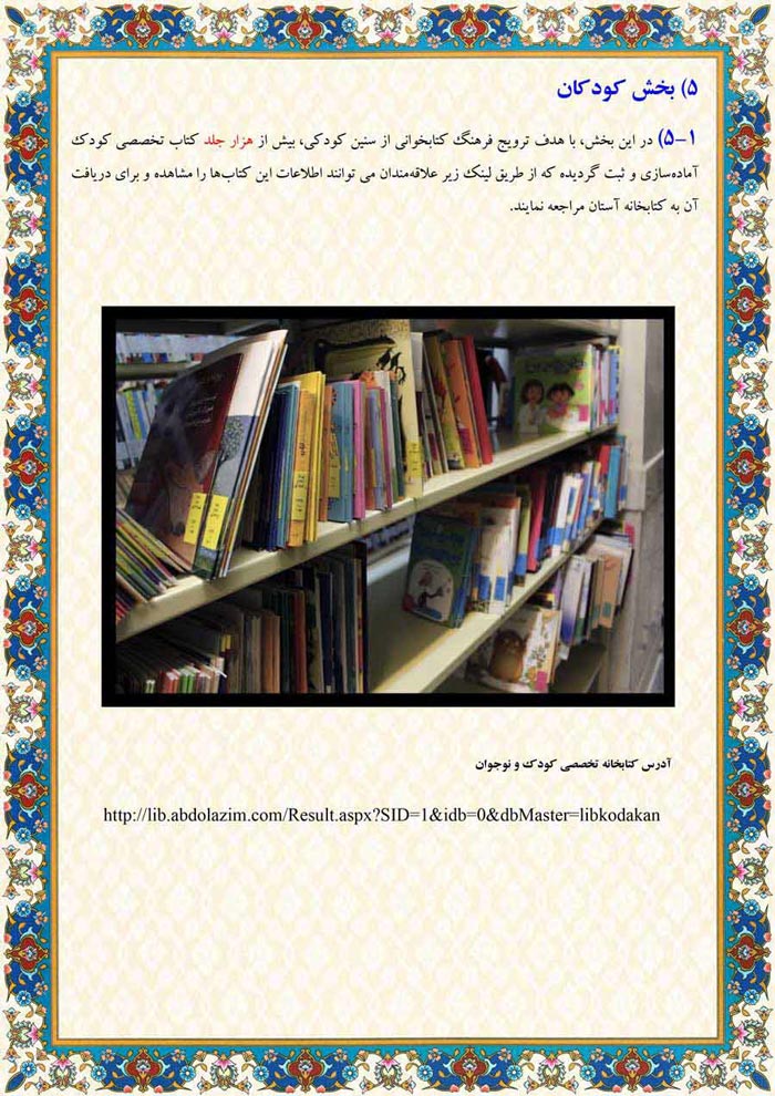 گزارش عملکرد یکساله کتابخانه آستان حضرت عبدالعظیم علیه السلام