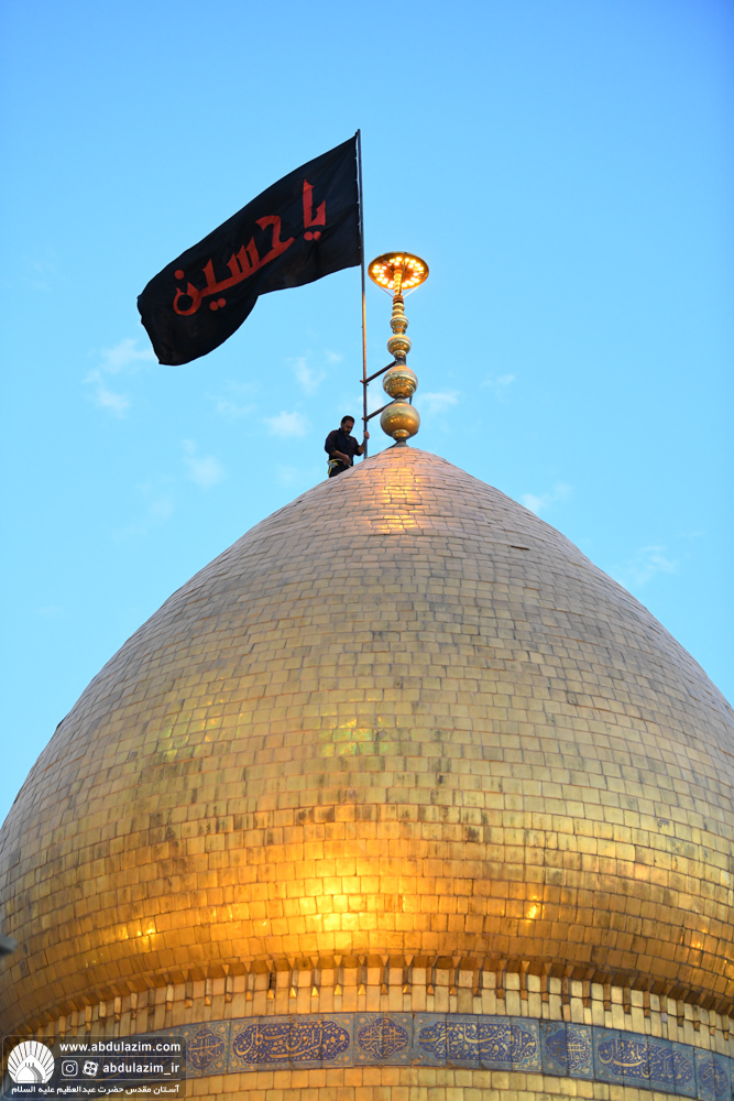 اهتزاز پرچم متبرک گنبد امام حسین(ع) بر فراز بارگاه ملکوتی حضرت عبدالعظیم(ع) /...