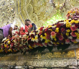 گل آرایی حرم مطهر در ایام ولادت حضرت جوادالائمه و امیرالمومنین علی ابن...