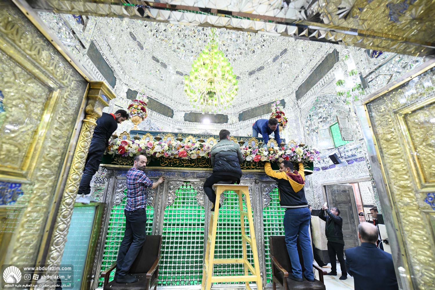 گل آرایی ضرایح مطهر آستان مقدس حضرت عبدالعظیم(ع) در شب عید سعید غدیر خم / عکس...