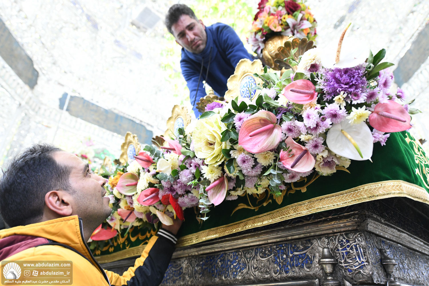 گل آرایی ضریح حضرت عبدالعظیم(ع) در شب ولادت حضرت امام علی (ع) / عکس: اسدی