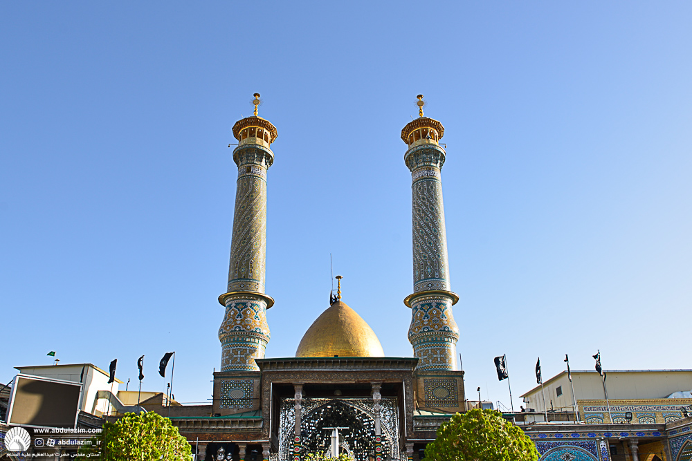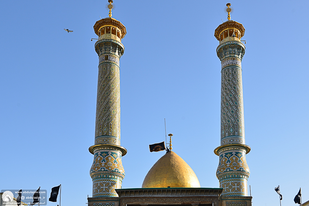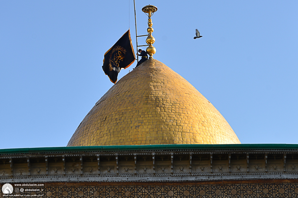 اهتزاز پرچم عزا بر فراز گنبد به مناسبت وفات حضرت عبدالعظیم حسنی(ع) / عکس: اسدی
