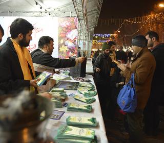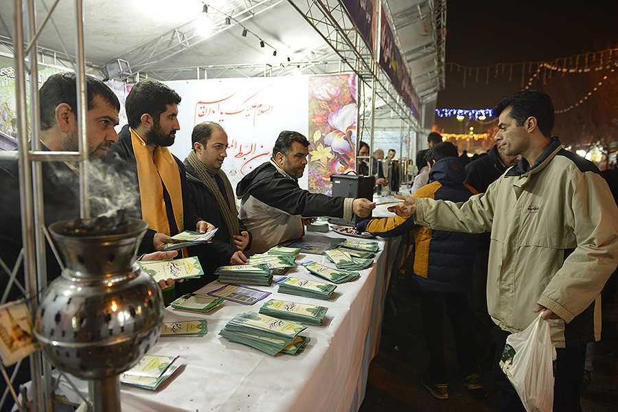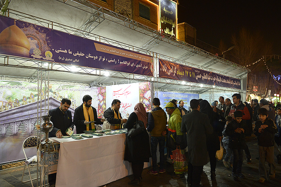 غرفه اطلاع رسانی و خدمات زائر" خورشید تابان ری " در ایّام بزرگداشت ولادت حضرت عبدالعظیم(ع) در خیابان شمالی منتهی به حرم / عکس: مصطفی صادقی