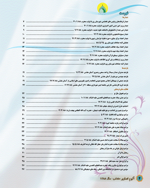 Staff and students of Quran learning Center of Holy...Visit the new regulations enshrine public workshop to...Iranian new year( NOWRUZ) ceremony in holy shrine - 1396...Hazrat 'Abd al 'Azim Hassani's (PBUH) Pilgrimage Pray...Celebration on the Eid –e-Mab'as", the celebration of...Celebrating the Anniversary Birth of Imam Mahdi (as) with...Federal Republic of Germany's Ambassador in Iran Visited...Pilgrimage and visit Mrs. Hanan ِDavar, Australian...Public visiting of work shop of new shrine of HAZRAT...Noble Qurans Tartil Reading Ceremony in Holy Shrine of...