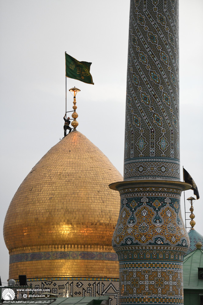 مراسم تعویض پرچم گنبد زرین بارگاه حضرت عبدالعظیم در شب میلاد (2) / عکس: نادری