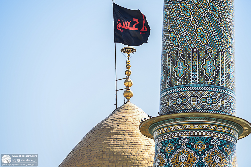 اهتزاز پرچم متبرک گنبد امام حسین(ع) بر فراز بارگاه ملکوتی حضرت عبدالعظیم(ع) /...