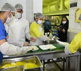 طبخ و توزيع 500 پرس غذای حضرتی بین بیماران کرونایی بیمارستان فیروزآبادی