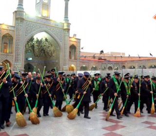 آیین جاروکشی حرم مطهر کریمه اهل‌بیت(س) با حضور خادمان آستان مقدس حضرت...
