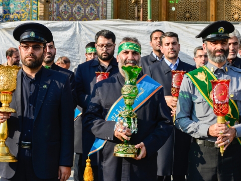 آيين تعويض پرچم گنبد حضرت عبدالعظيم(ع) همزمان با شب رحلت این محدث والامقام با حضور پرشور عاشقان حضرت سیدالکریم(ع) در کربلای ایران برگزار شد.