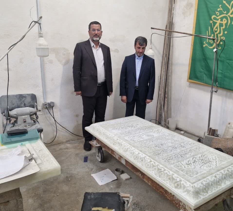 دکتر برادران، معاون توسعه مدیریت و منابع آستان مقدس حضرت عبدالعظیم(ع)، بههمراه بیژن سلیمانپور، فرماندار ویژه شهرستان ری، از کارگاه حجاری سنگ جدید مرقد شریف حضرت عبدالعظیم حسنی(ع) واقع در آستان امامزاده سیدعلاءالدین حسین(ع) در شهر شیراز بازدید کردند.