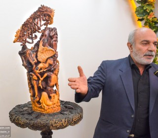 آئین رونمایی و اهداء اثر منبت کاری استاد یدالله جعفری فیروزآبادی به آستان مقدس / عکس: اسدی