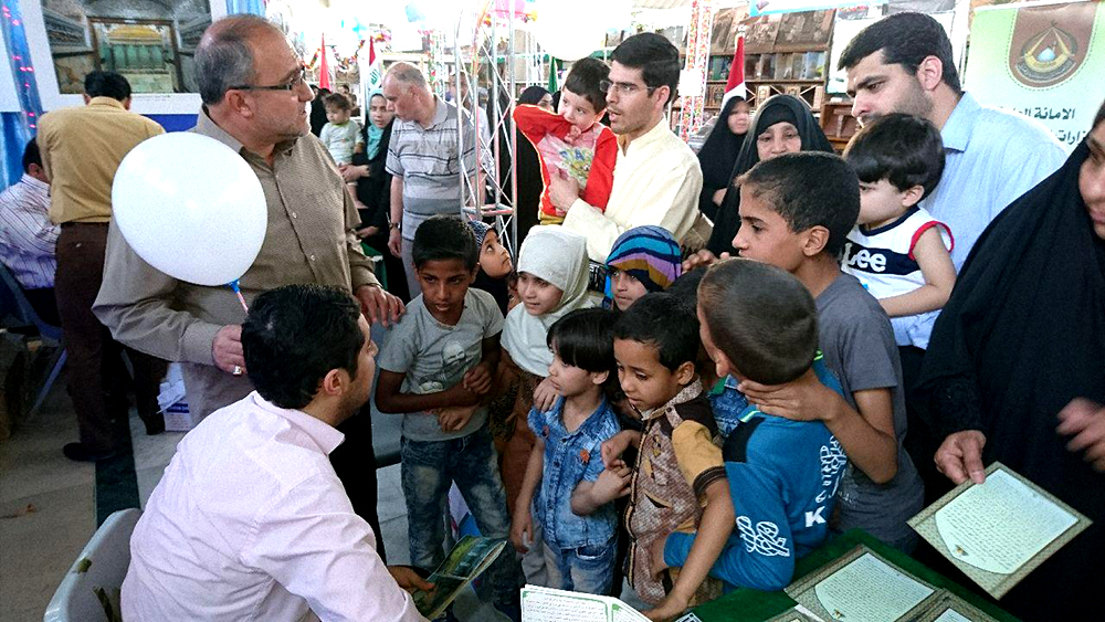 حضور آیت الله سید محمد سعیدی - تولیت آستان مقدّس حضرت معصومه (س) در غرفه آستان مقدّس در نمایشگاه ربیع شهادت کربلا