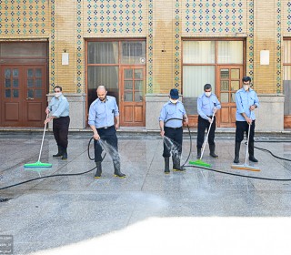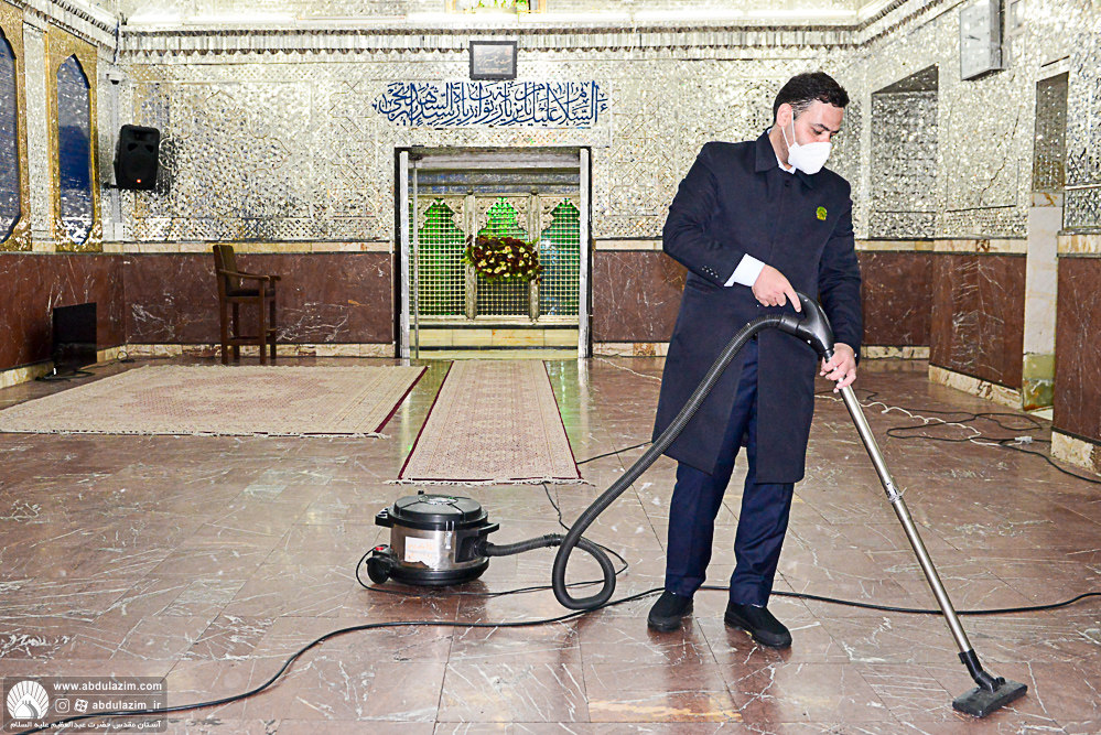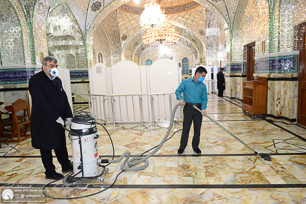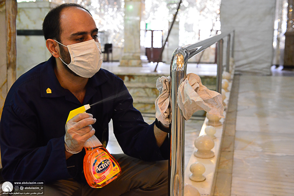 ضدعفونی کردن صحن های حرم حضرت عبدالعظیم(ع) توسط سپاه پاسداران تهران بزرگ /...