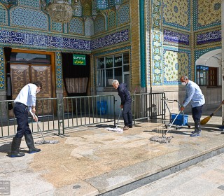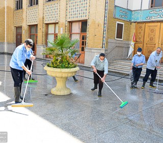 شستشو و نظافت حرم ها ، صحن ها و رواق های آستان مقدس /99/3/3 / عکس: جلال اسدی