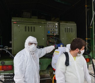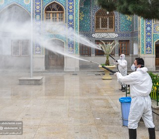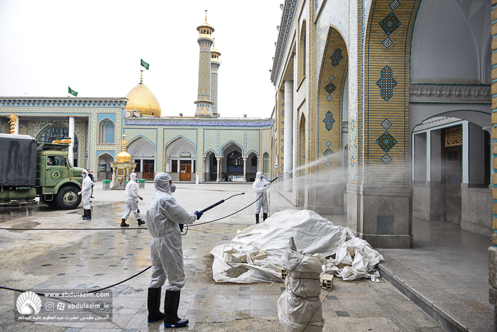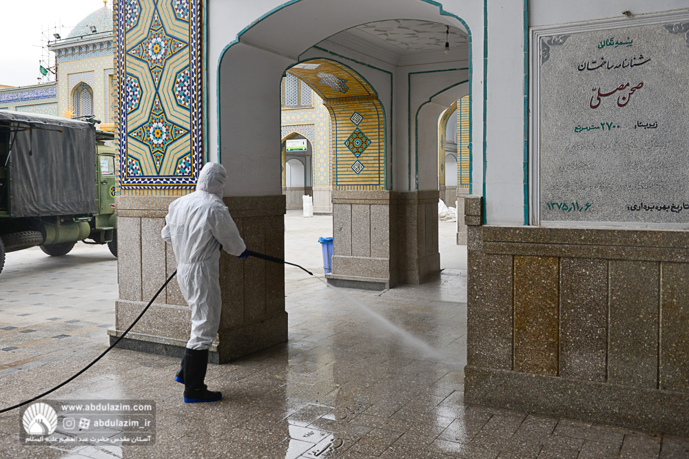 ضدعفونی کردن صحن های حرم حضرت عبدالعظیم(ع) توسط سپاه پاسداران تهران بزرگ / عکس: اسدی