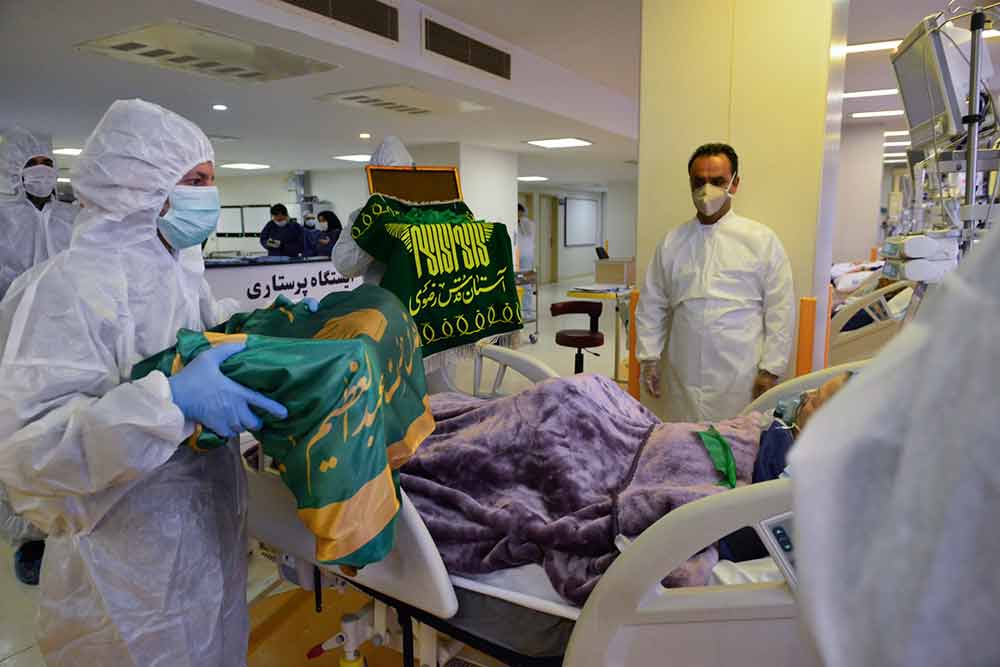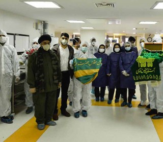 عیادت خادمین آستان مقدس حضرت عبدالعظیم(ع) از بیماران کرونایی بیمارستان هاجر(س...