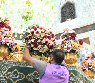گل آرایی حرم مطهر در ایام ولادت حضرت جوادالائمه و امیرالمومنین علی ابن...