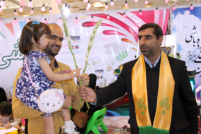 387--عکس۱۳۹۵/۰۴/۰۵توزيع گل، همزمان با شب ميلاد كريم اهل بيت امام حسن مجتبي(ع) درنمایشگاه قرآن کریم ،غرفه آستان مقدس